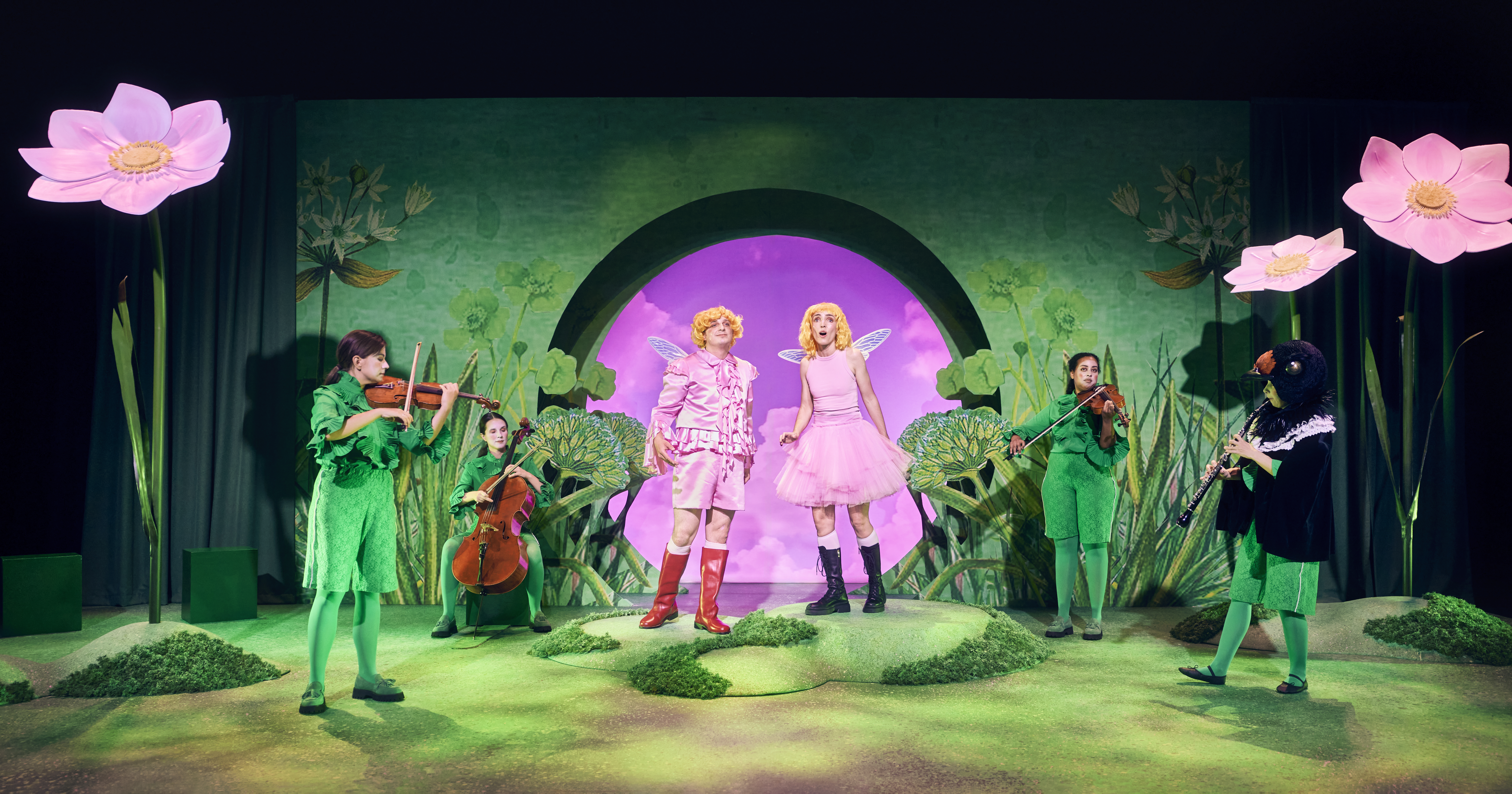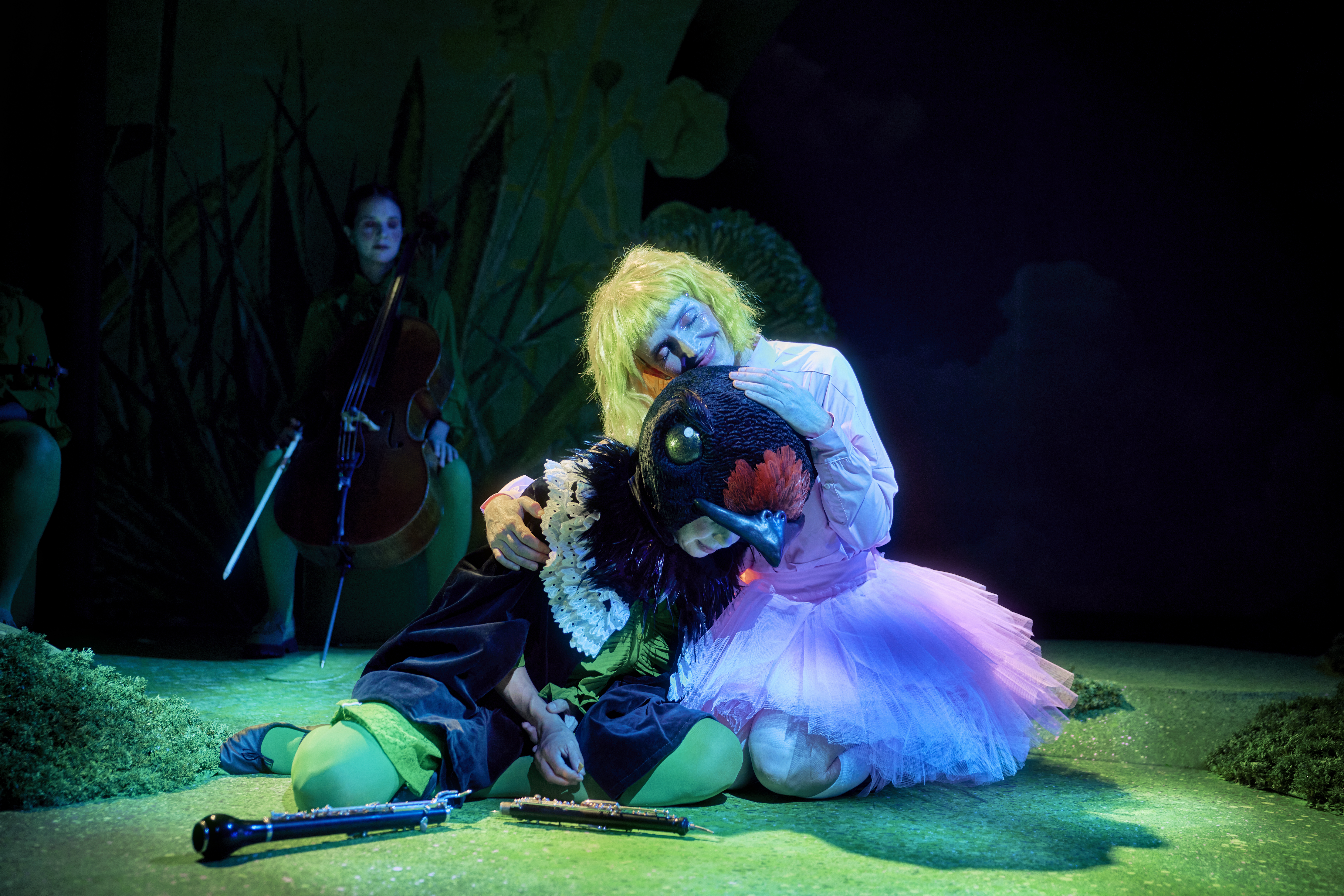 On stage, three opera singers and four musicians bring the fairytale’s characters and the sounds of nature to life in a magical setting designed by scenographer Katrine Gjerding and lighting designer Thora Eriksen.